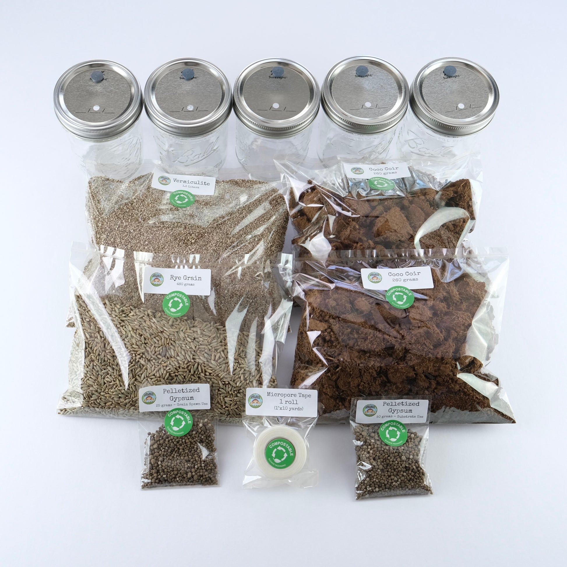 Thinking about growing mushrooms at home? This is the perfect place to start! Save yourself the frustration and expense of drilling spawn jar holes, locating all the individual ingredients, and measuring out ratios; our 35-50 liter starter kit has the essentials you'll need to dive into the wonderful world of fungi. This kit contains: